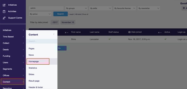 Go to the side menu in the back-office and select 'Homepage’ under ‘Content'. There you will find multiple sections which will allow you to play around with the following: