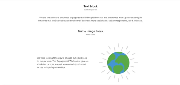 Other elements you can add to your content include a text block with a title and a link, which can be further emphasised with a call to action button.