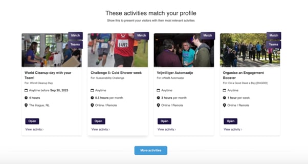 Show your visitors the activities that are most relevant to them. Learn more about the matching functionality here.