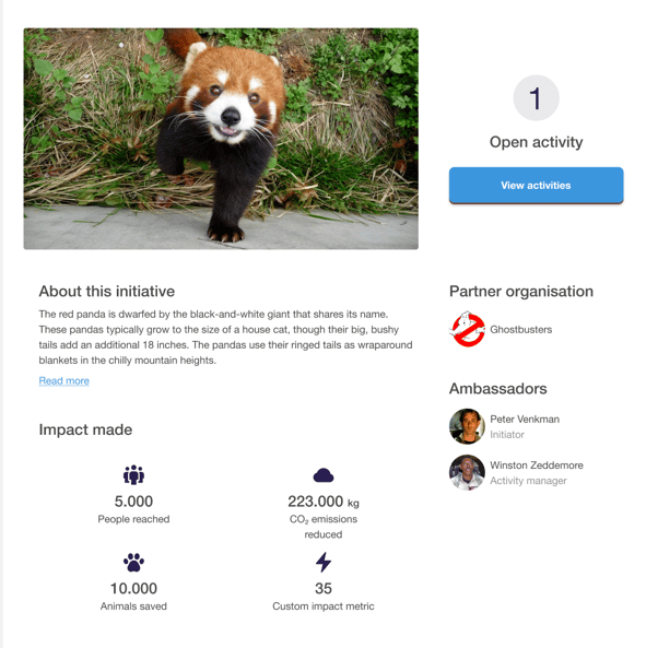 If impact metrics are added on activity level the initiative page shows the metrics so that an initiator can inform potential contributors on the impact made with his/her initiative:
