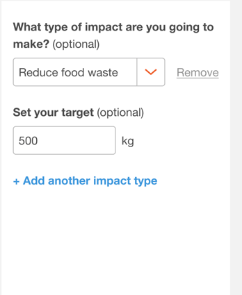 Once this feature is activated for you and your impact metrics are added to the back office, the following (optional) question will be added to the activity create flow: "What type of impact are you going to make?".